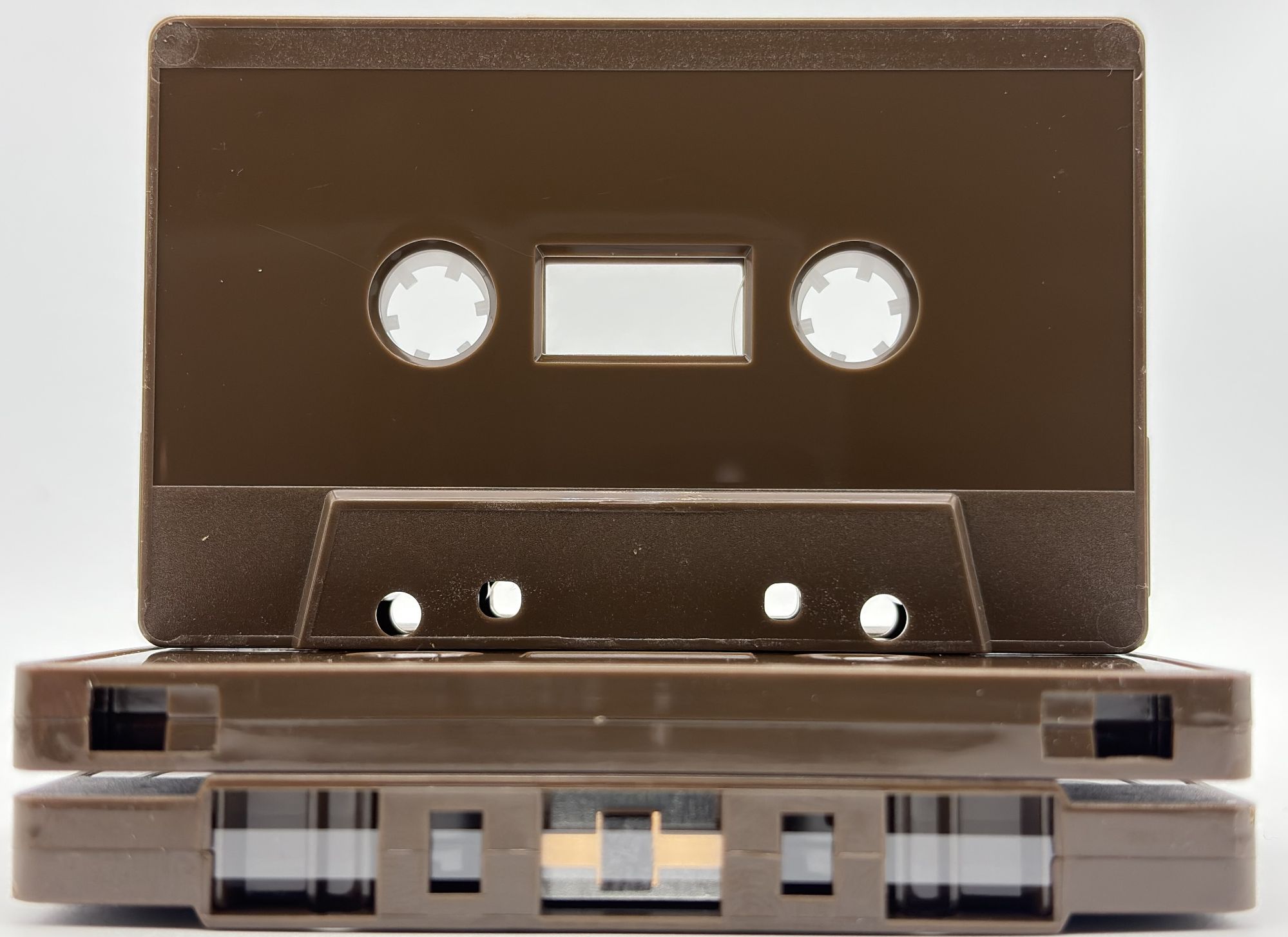 The welded tab out shells will probably need the 2 holes covering up with sticky tape to enable 'record' on domestic tape recorders. Or use our little red tabs.